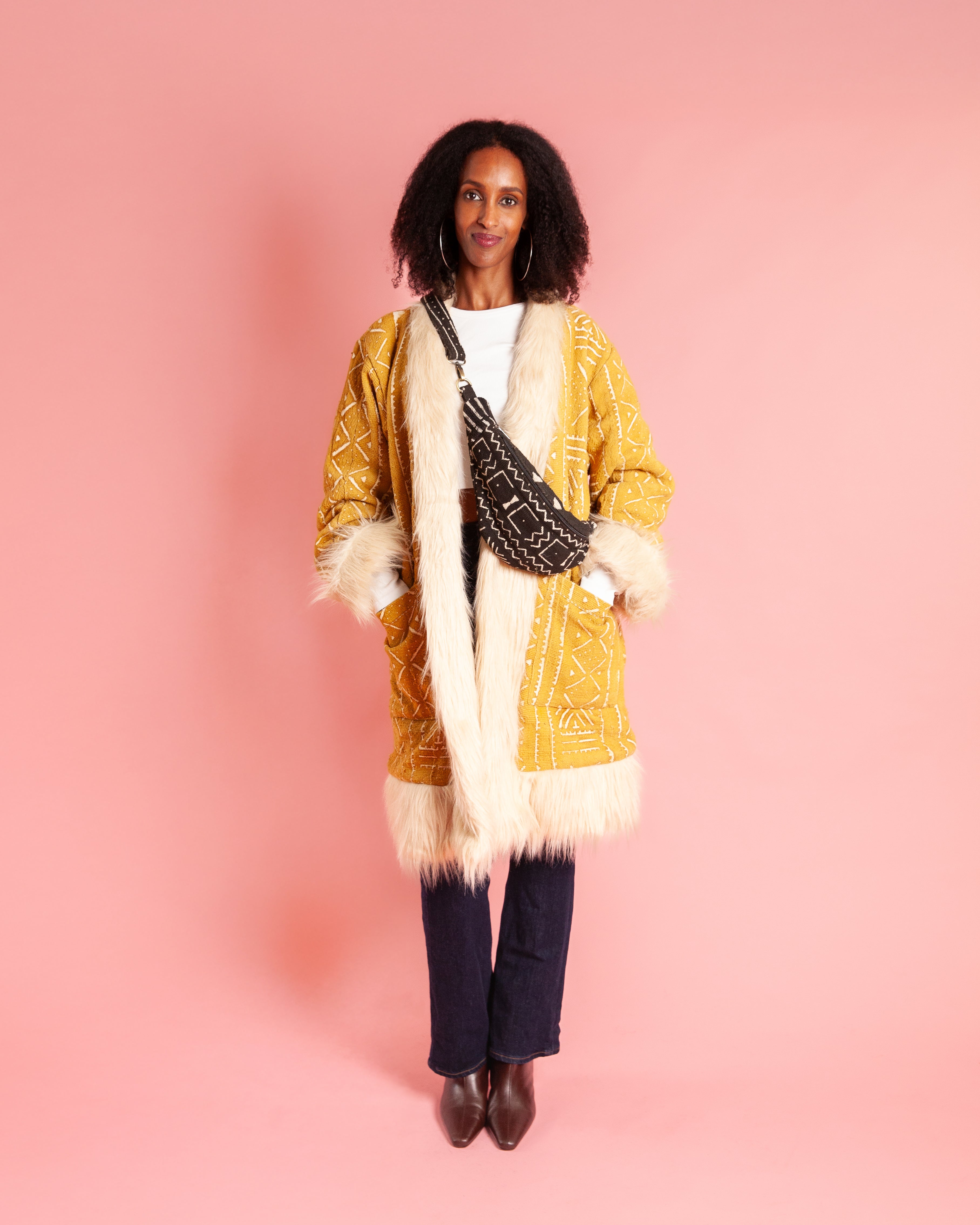 The Little Fox Coat has been inspired by the amazing Afghan coats everyone wore in the 70's. Lovingly made by hand with block printed mudcloth outer, a faux fur lining and deep pockets.