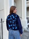 Made from 100% cotton velvet, these bomber jackets were designed on the shape of a 90's bomber I picked up at the car boot. They have a striped cotton lining and are adorned with hand embroidery. Lovingly made in Jaipur they come in three sizes, M L and XL.