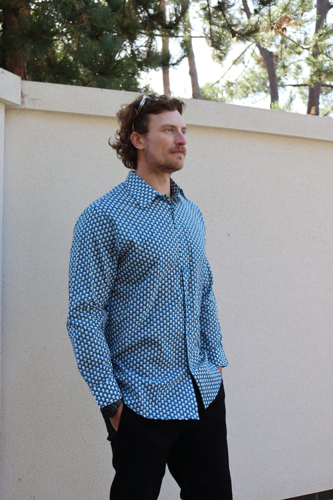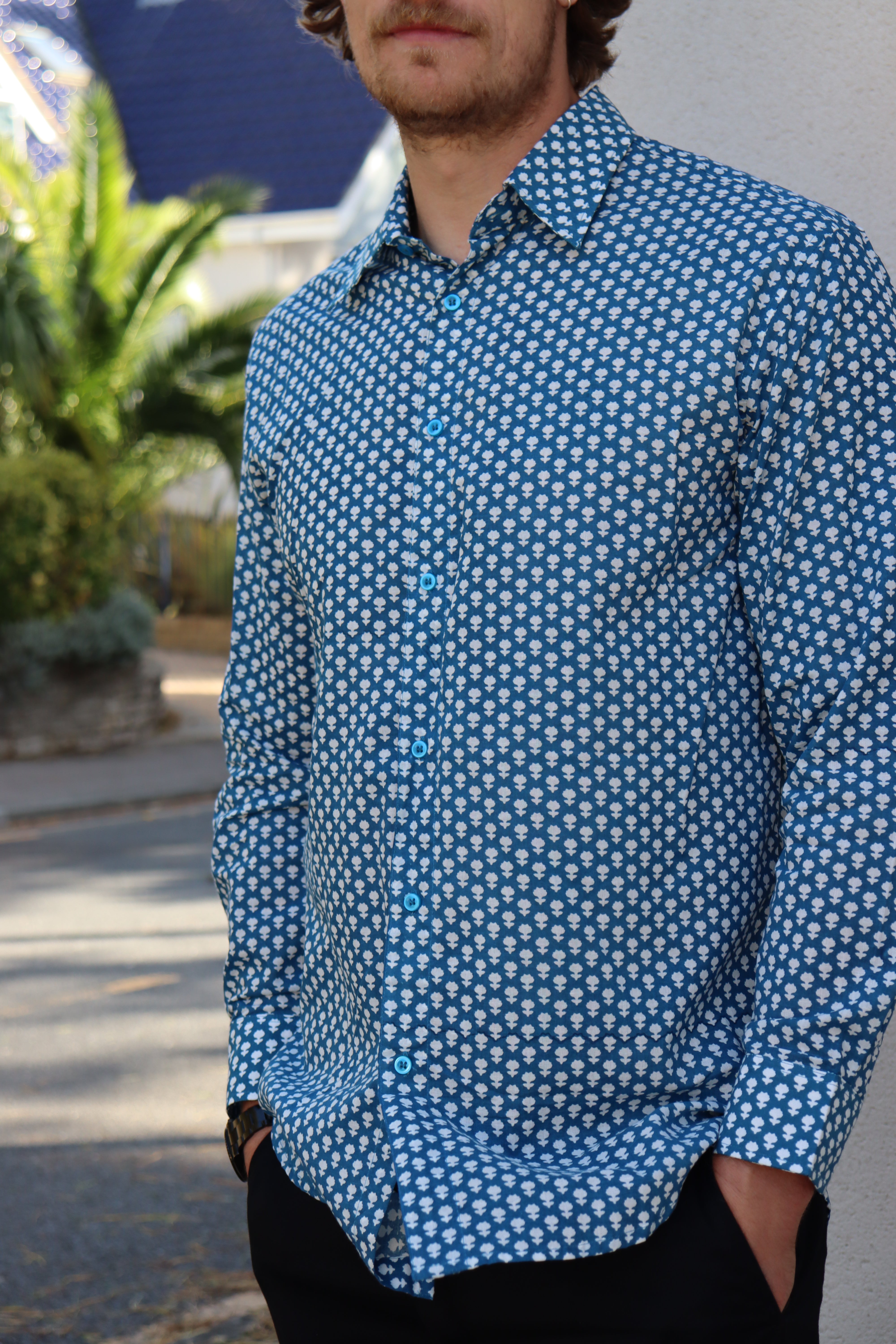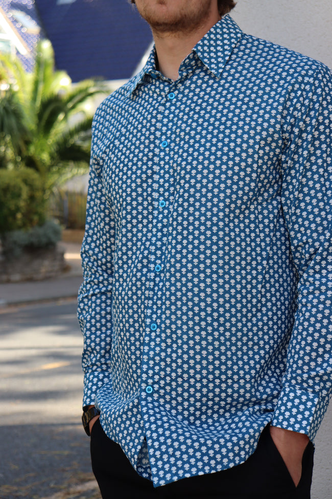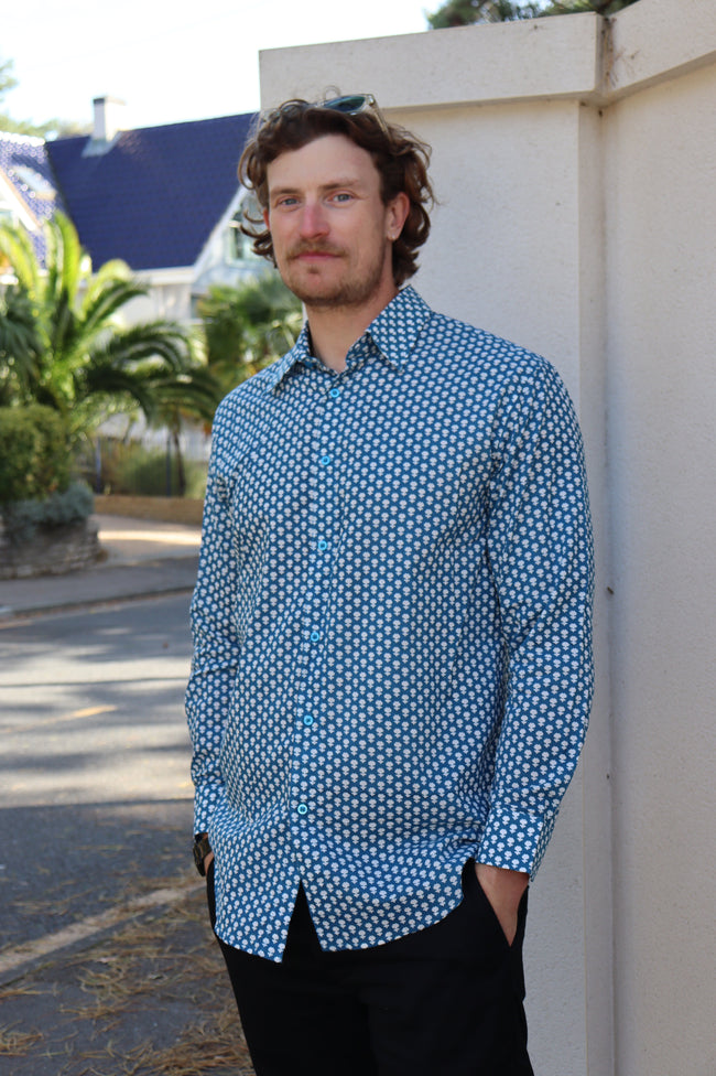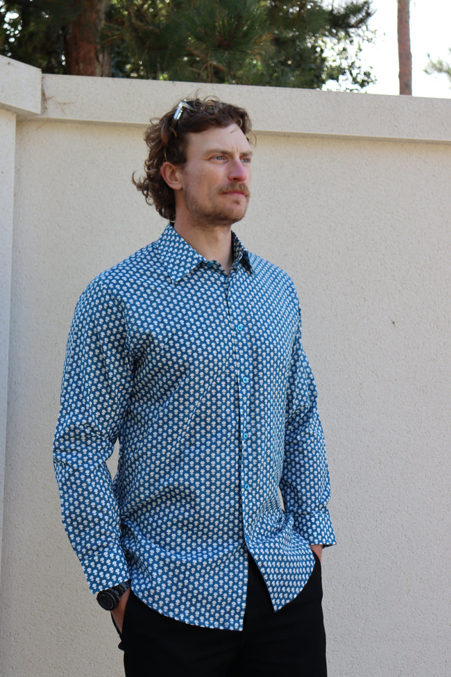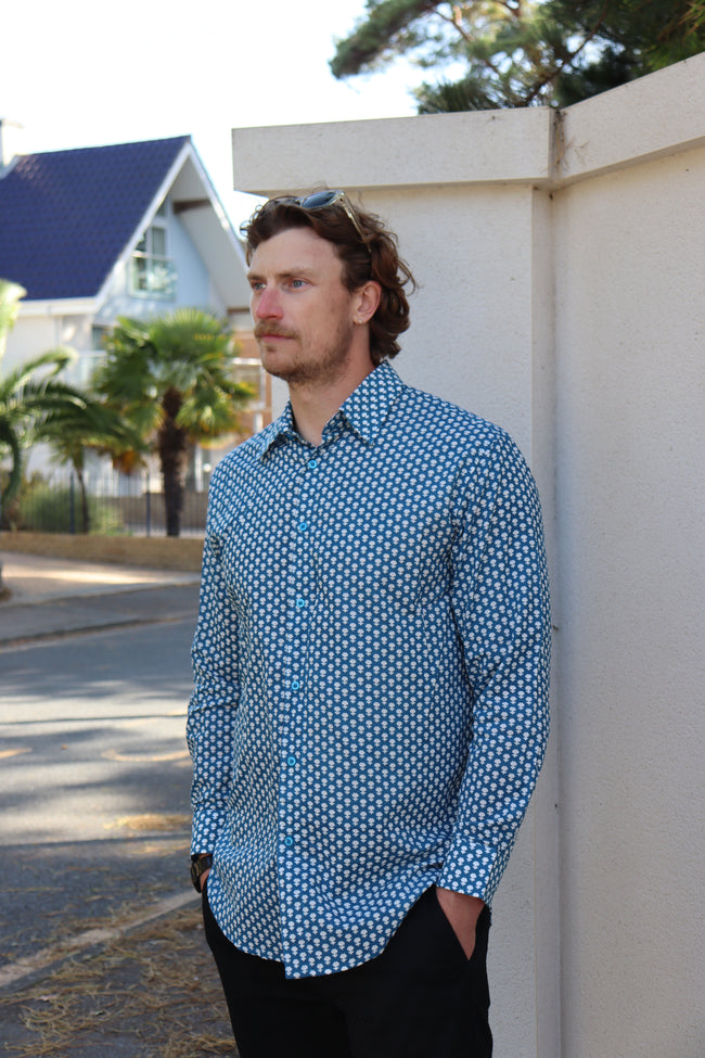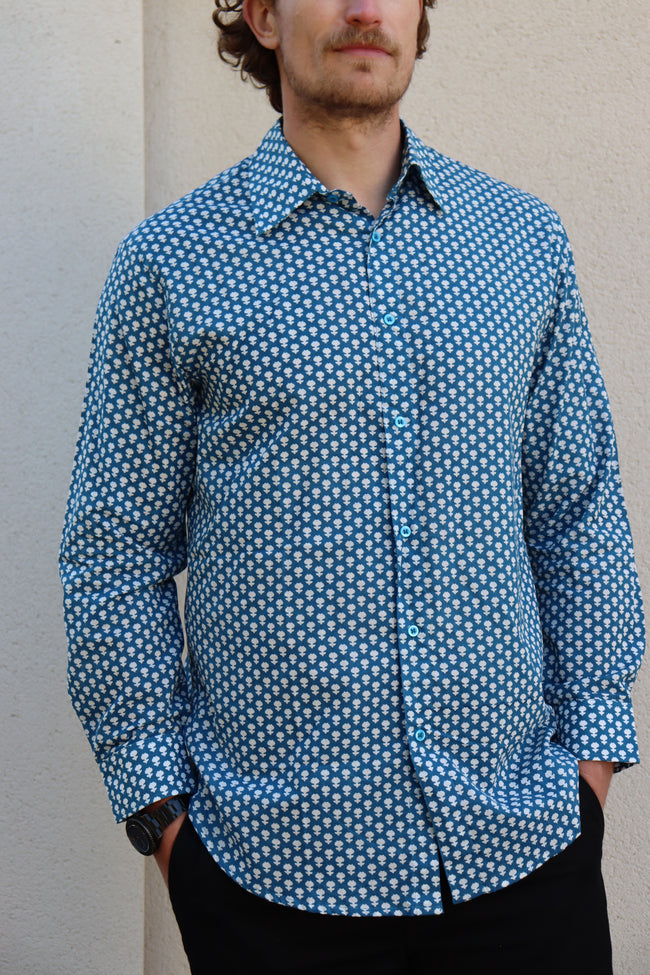 Our lightweight organic cotton shirts are hand printed and use environmentally friendly vegetable dyes. Perfect over the summer months with the versatility to take you into the colder seasons too. Fits true to size. Wash at a low temperature, and due to their natural cotton composition there's no need to iron - just hang dry!