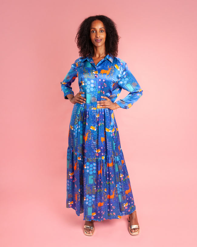 Our 100% silk shirt dresses are made from end of roll silks so we only have a couple made in each pattern - meaning once a pattern is sold out it's GONE. They come with handy little pockets and are a one size fits all for most - they will fit from a size 6 to a 16 comfortably.