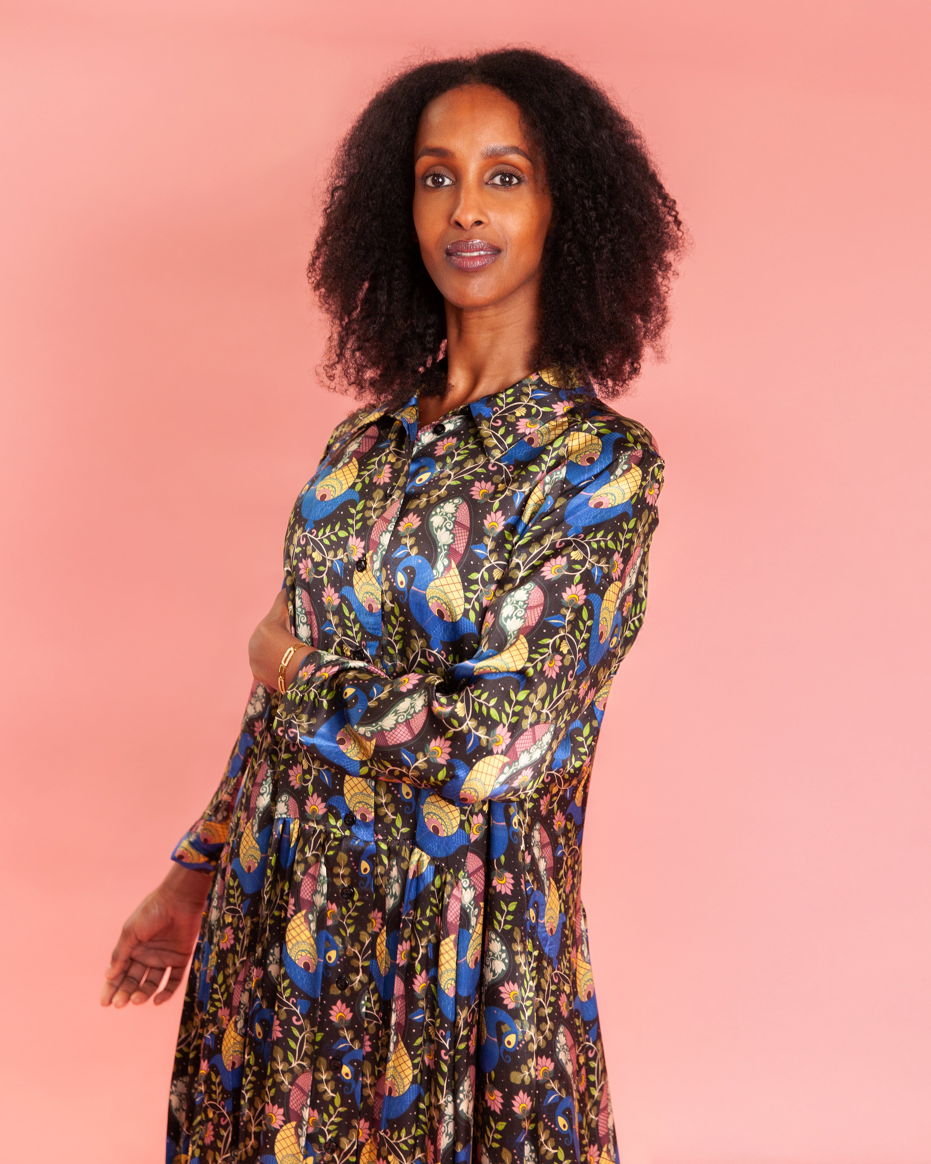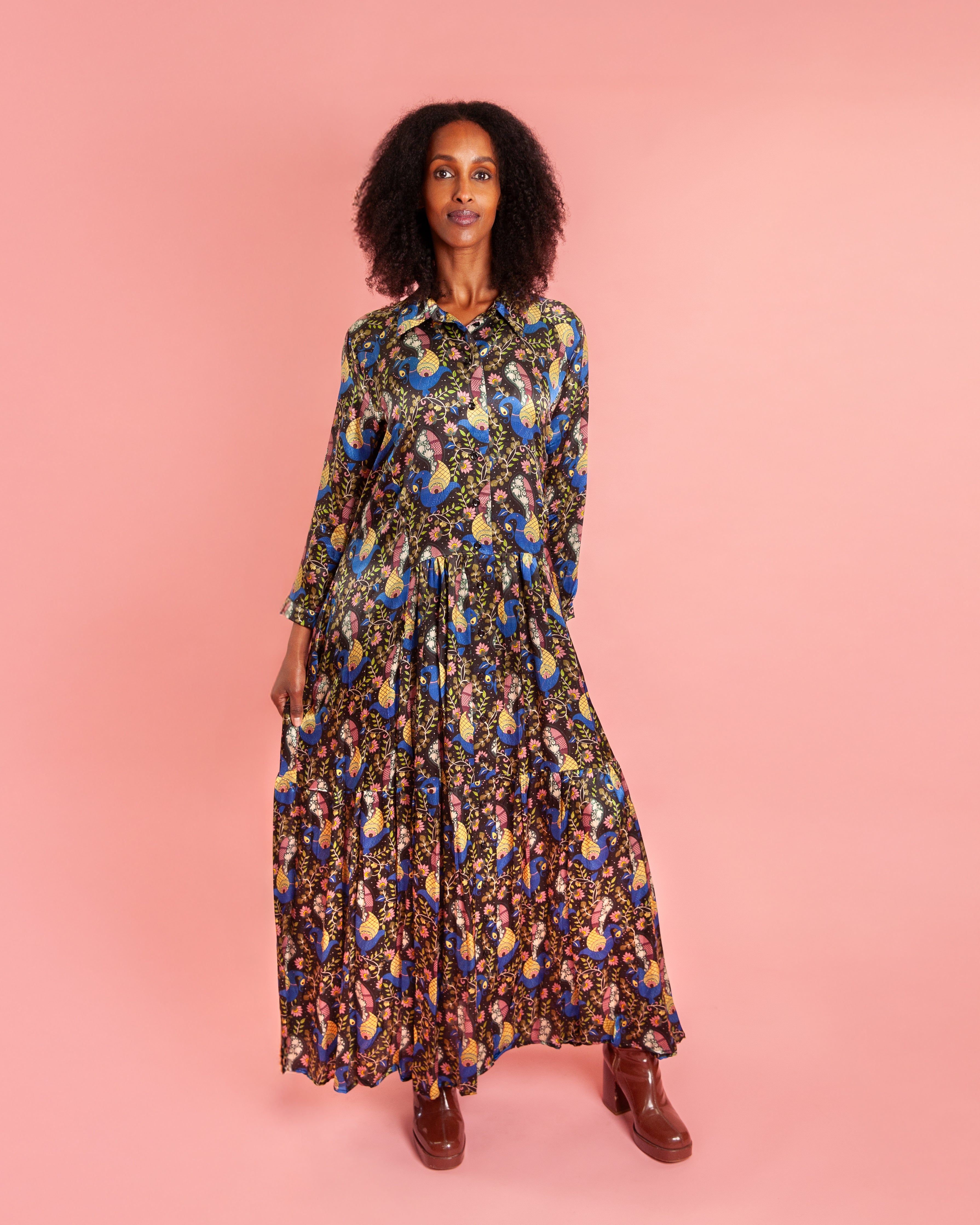 Our 100% silk shirt dresses are made from end of roll silks so we only have a couple made in each pattern - meaning once a pattern is sold out it's GONE. They come with handy little pockets and are a one size fits all for most - they will fit from a size 6 to a 16 comfortably.