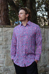 Our 100% silk shirt dresses are made from end of roll silks so we only have a couple made in each pattern - meaning once a pattern is sold out it's GONE. They come with handy little pockets and are a one size fits all for most - they will fit from a size 6 to a 16 comfortably.