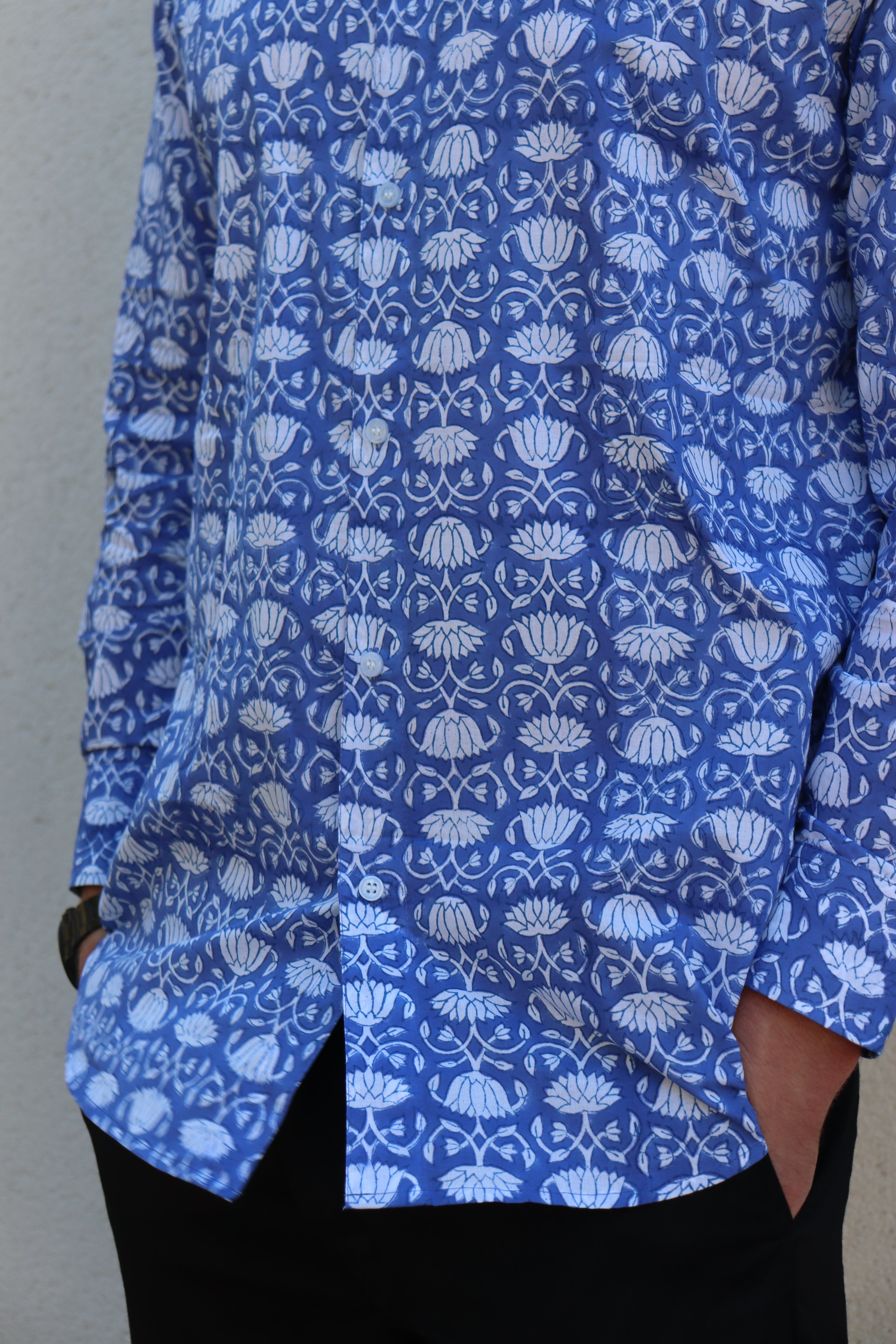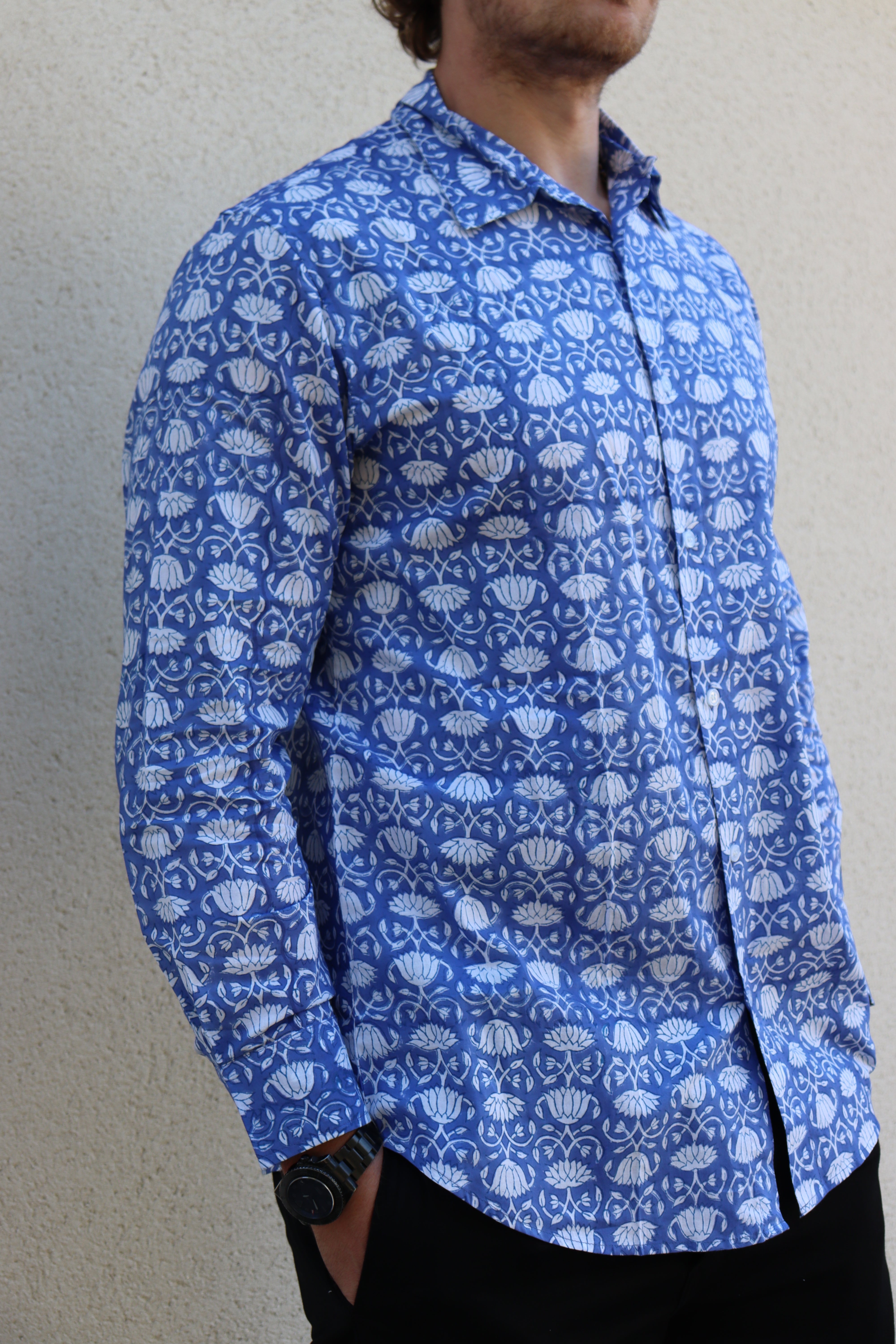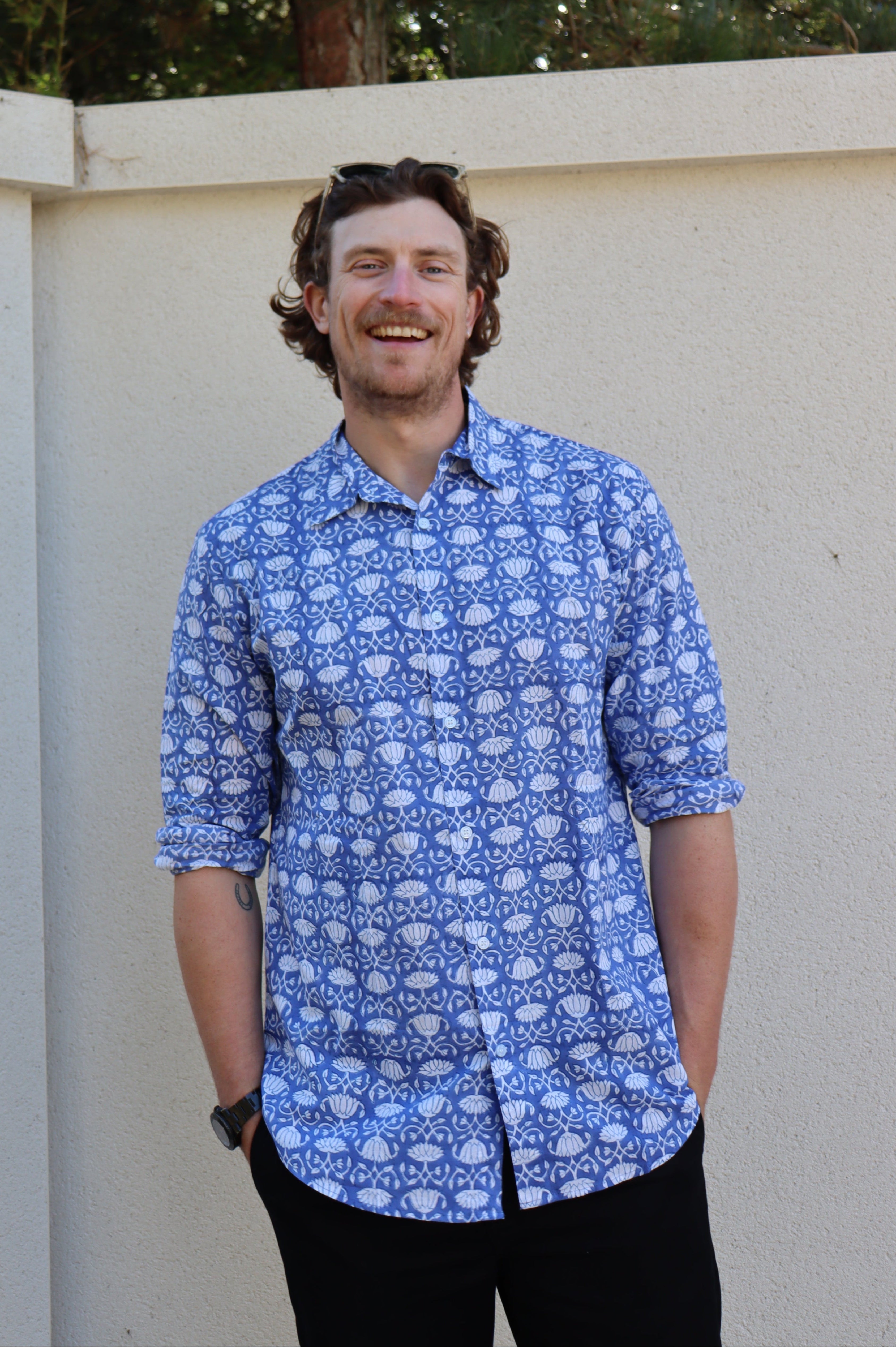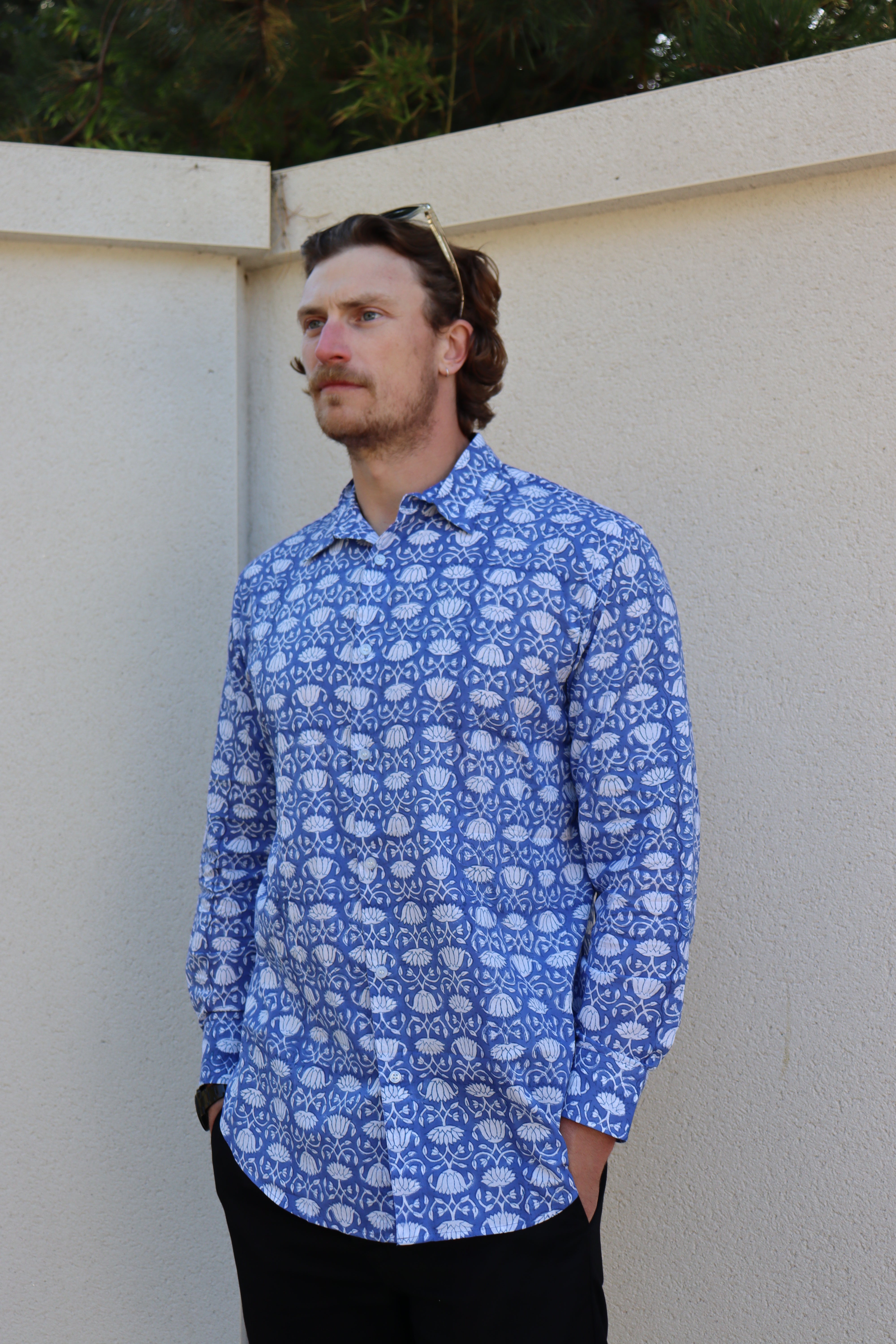 Our lightweight organic cotton shirts are hand printed and use environmentally friendly vegetable dyes. Perfect over the summer months with the versatility to take you into the colder seasons too. Fits true to size. Wash at a low temperature, and due to their natural cotton composition there's no need to iron - just hang dry!